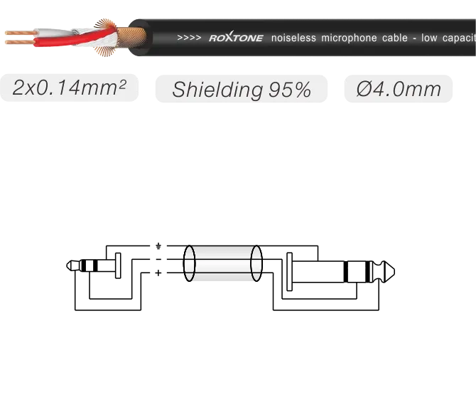1 x plugue estéreo moldado de 3,5 mm - 1 x plugue estéreo moldado de 6,3 mm
